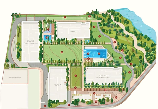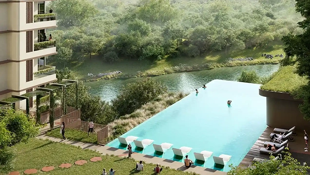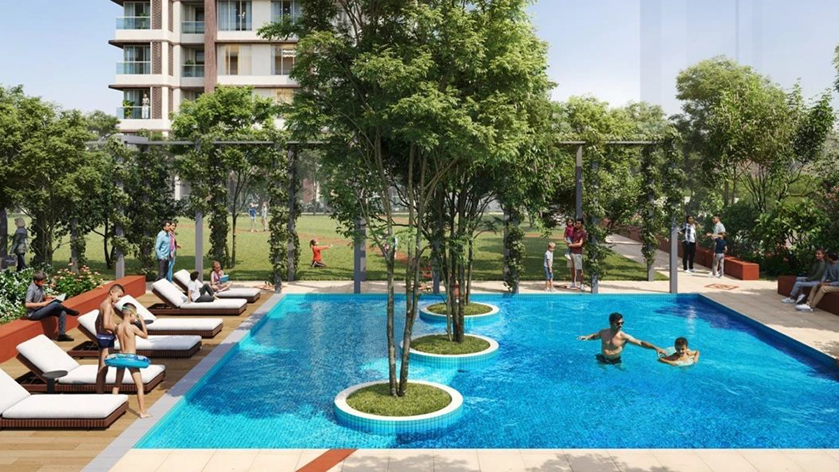 Birla Punya Phase 2 offers over 50 world-class amenities including a semi-Olympic swimming pool, gymnasium, spa, business lounge, mini theatre, kids’ play area, landscaped gardens, riverfront promenade, lounge deck, net cricket zone, jogging track, yoga area, and senior citizen seating zones.