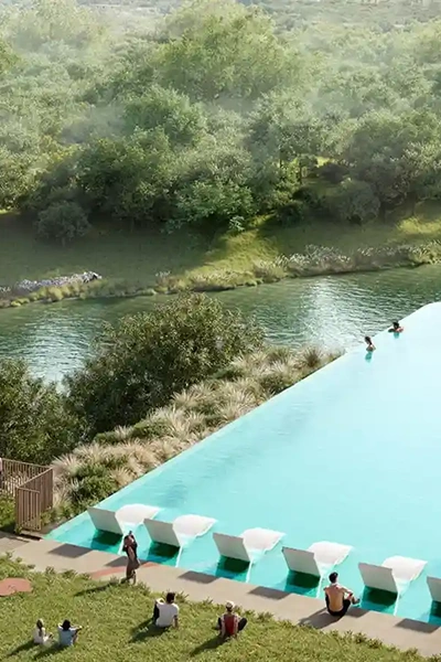 Birla Punya Phase 2 offers over 50 world-class amenities including a semi-Olympic swimming pool, gymnasium, spa, business lounge, mini theatre, kids’ play area, landscaped gardens, riverfront promenade, lounge deck, net cricket zone, jogging track, yoga area, and senior citizen seating zones.
